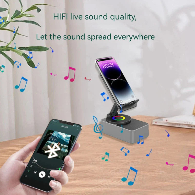 Dites bonjour à une commodité inégalée. Le concentrateur d'énergie trifonctionnel combine un support de téléphone, une banque d'énergie et un haut-parleur Bluetooth en une seule unité élégante. Parfait pour ceux qui aiment la technologie mais détestent transporter plusieurs appareils, ce hub est le compagnon idéal pour les voyages, le travail ou les loisirs. Il vous suffit d'insérer votre téléphone dans le support, de profiter de la musique sans fil et de maintenir votre batterie chargée, le tout en une seule fois.
