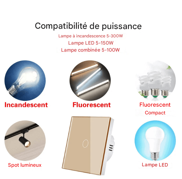 L'Interrupteur Tactile en Verre AXUS offre une durabilité exceptionnelle grâce à son matériau de haute qualité et sa technologie de pointe. Ses 100,000 cycles mécaniques garantissent une utilisation prolongée par rapport aux interrupteurs traditionnels. Vous économisez sur le long terme en évitant des remplacements fréquents.